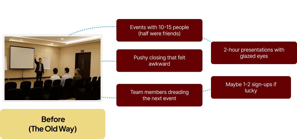 You run events with empty seats, low conversions, and walk away exhausted with little to show for it
