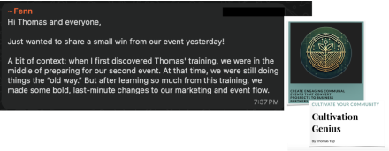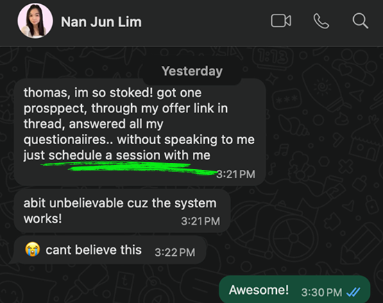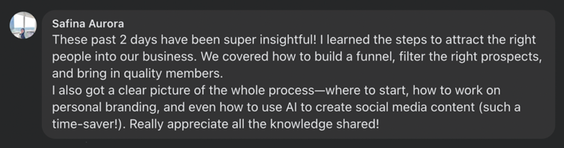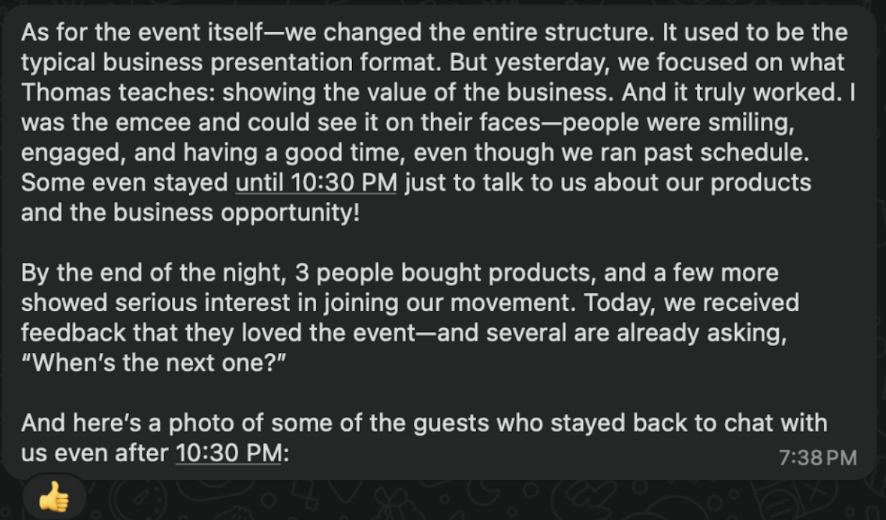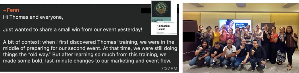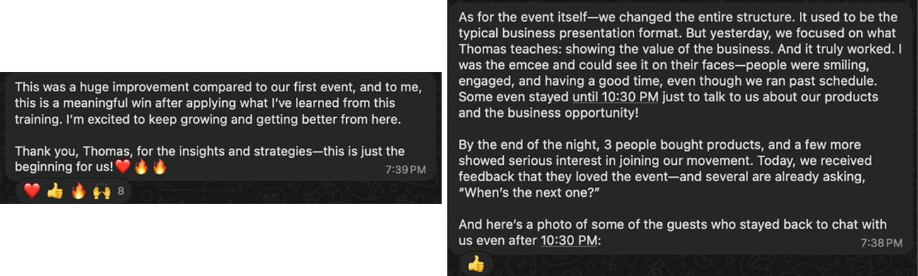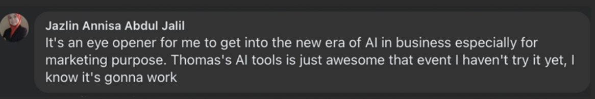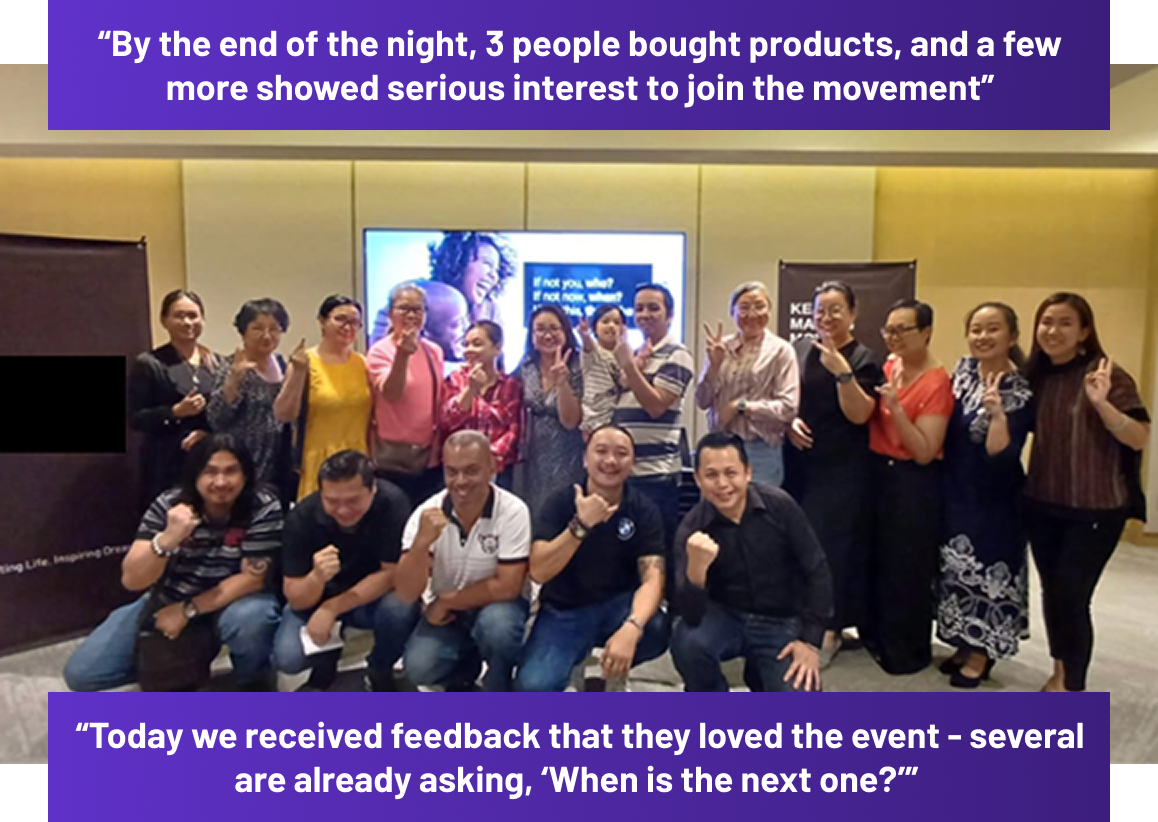 First leads within 7 days. Fennylia transformed her events in 1 WEEK. Deva closed USD1,000+ commission in 7 days.