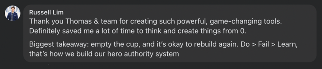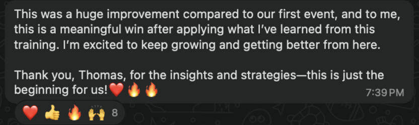 Thomas’ class really gave us a lot of fantastic tools that we can use to power up our business.