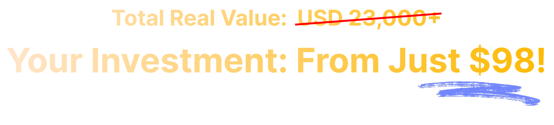 The USD98 workshop stands alone. Everything else is optional for those who want to accelerate even faster.