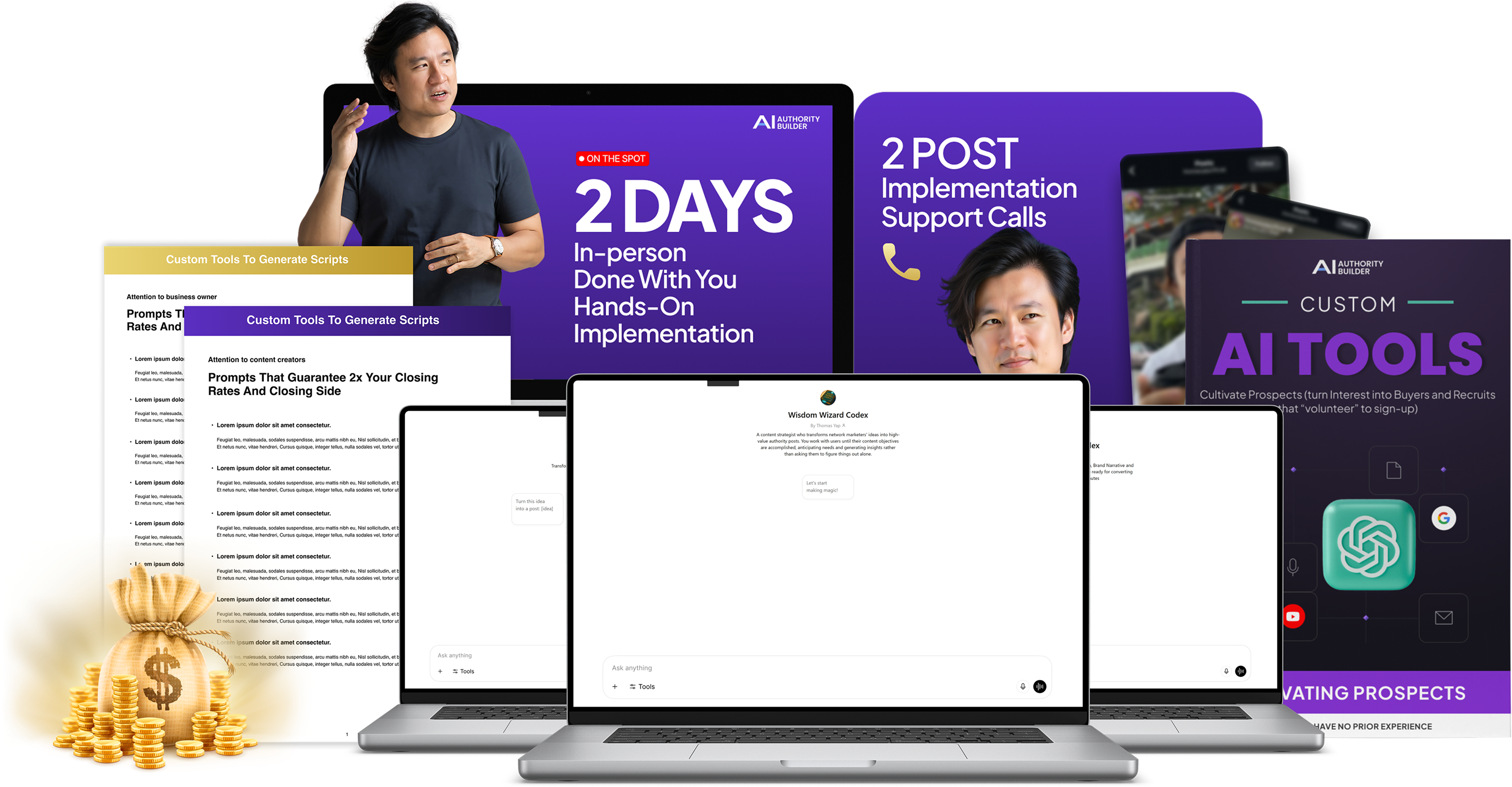 Both days build on each other for maximum impact. Day 1 builds your Attraction system, Day 2 builds your Conversion and Team systems. I’ll be happy to just give you the tools, but I want to see them being put to good impact. That’s why these 2 days we’re going to spend together matters.